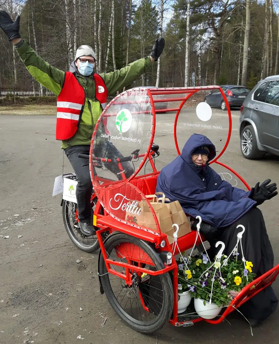 Mikko on myös Mäntykodin koulutettu riksakapteeni. Testamentti varoilla Mäntykotiin hankittiin myös riksapyörä. Oulun korkeuksilla pitkä talvi tietenkin hieman lyhentää riksakautta, mutta kesällä Terttu-riksa liikkuu säännöllisesti. Ulkoilukin suunnitellaan siten, että mennään esimerkiksi Terttu-riksalla katselemaan Ainolan puistoa, torille kahville tai ihmettelemään uusia kaupunkiin nousevia rakennuksia.