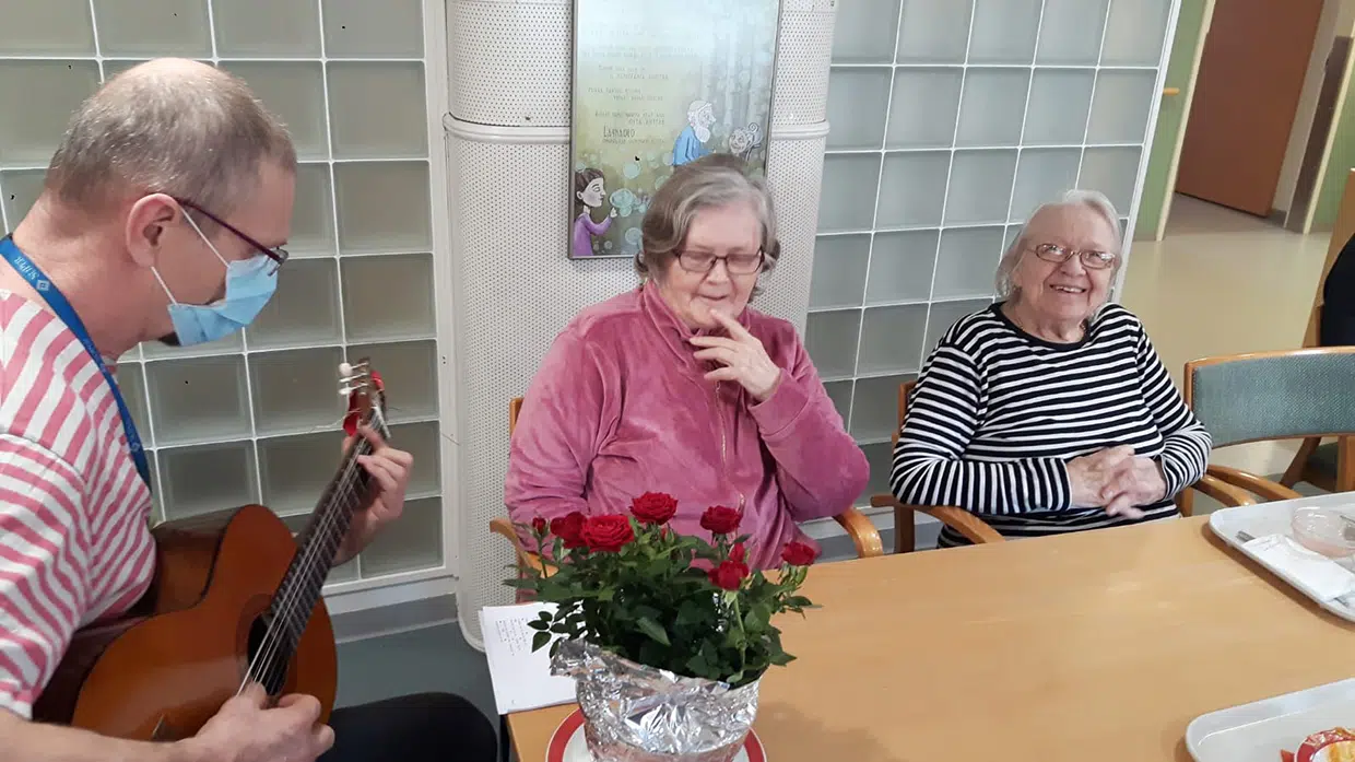 “Kulttuurihoitajana pyrkimykseni on se, että yhteinen tekeminen lähtee asukkaista. Ei mitään väkisin askartelua vaan mielekästä asukaslähtöistä toimintaa”, kertoo kulttuurihoitaja-Mikko, ja jatkaa “Olemme istuttaneet kukkien siemeniä keväällä ja hoitaneet niitä yhdessä syksyyn saakka. Leipominen kiinnostaa niin naisia kuin miehiä”. Laululla ja musiikilla on suuri osuus päivissä, se kiinnostaa, innostaa osallistumaan ja yhdistää enemmän kuin askartelut. Mikko myös vierailee kitaran ja tuttujen sävelten kanssa niiden asukkaiden huoneessa, jotka eivät jostain syytä pääse osallistumaan ryhmätoimintoihin.