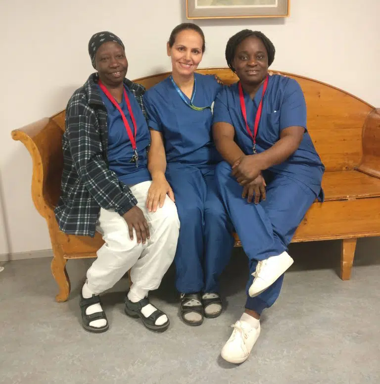 Tänä päivänä Mäntykodilla työskentelee 38 hoito- ja tukipalveluiden ammattilaista. Vakituisesta/ pitkäaikaisista sijaisistamme yhdeksän on maahanmuuttajataustaista. He ovat kotoisin kolmesta eri maanosasta, yhdeksästä eri maasta.